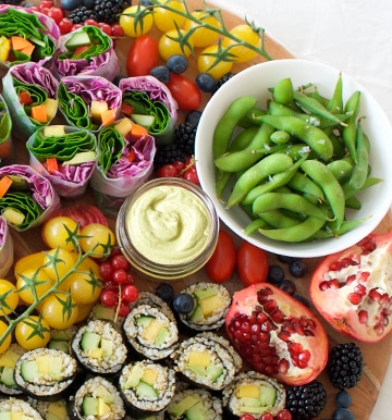 Éveillez les papilles gustatives de vos convives avec cette planche apéritive asiatique pleine de délices. Les rouleaux de sushi colorés, les rouleaux de printemps frais et les fèves Edamame offrent une expérience apéritive surprenante. La trempette au fromage ERU Cheese Spread Light et wasabi se marie parfaitement avec les délices de cette planche apéritive.