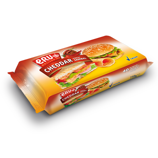Les ERU Slices Cheddar Naturel et ERU Slices Cheddar Sambal sont fabriquées avec le meilleur cheddar. Les ERU Slices Cheddar Sambal sont relevées au sambal piquant. Il y a également les ERU Bio Slices fabriquées avec du fromage biologique 50 % M.G.e.m. Les ERU Slices sont un complément savoureux pour vos burgers (végan), vos plats au four, vos croque-monsieur et autres nachos.