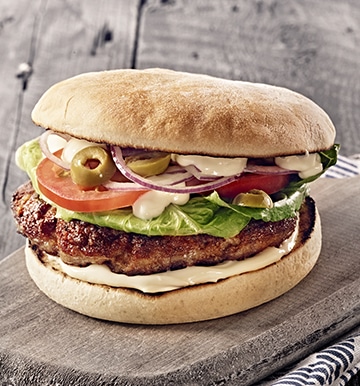 Verrijk jouw menukaart met deze Griekse lamsburger met geitenkaas en verras jouw gasten. De zachte, romige smaak van de gesmolten geitenkaas gaat op deze burger heerlijk samen met de bitterheid van de groene olijven.