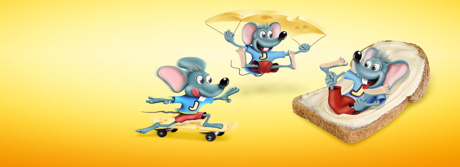 Dobré a zdravé jídlo je pro myšáka Jimmyho velmi důležité. Takže každé ráno snídá celozrnný chléb s taveným sýrem. To myšákovi dává energii do dalších dobrodružství. Každý kousek, který Jimmy sní, ho dělá o trochu rychlejším.