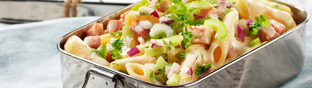 Als de temperaturen weer wat zomerser worden, is een pastasalade altijd een goed idee. Deze frisse pastasalade met ERU Balans Ham, hamblokjes, rode ui en bleekselderij maak je in een handomdraai klaar tijdens het Paasweekend.