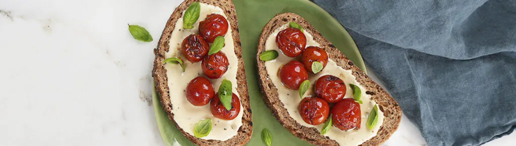 Rustiek gegrilde tomatentoast met roomzachte smeerkaas
