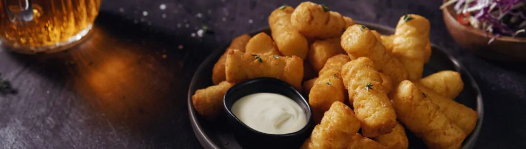 Zin in een makkelijke snack? Tegen deze aardappelkroketjes met extra gerijpte kaas zeg je geen nee. Bak de aardappelkroketjes volgens de bereidingswijze en dip in ERU Prestige.