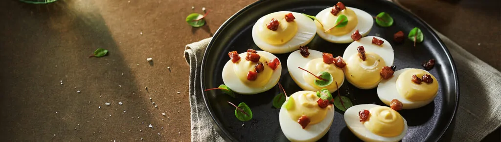 De smaak van extra gerijpte kaas geeft deze gevulde eitjes net even een andere twist dan je van zo’n lekker eitje gewend bent. Daarnaast zorgen de krokante spekblokjes voor een knapperige bite. Eet smakelijk!