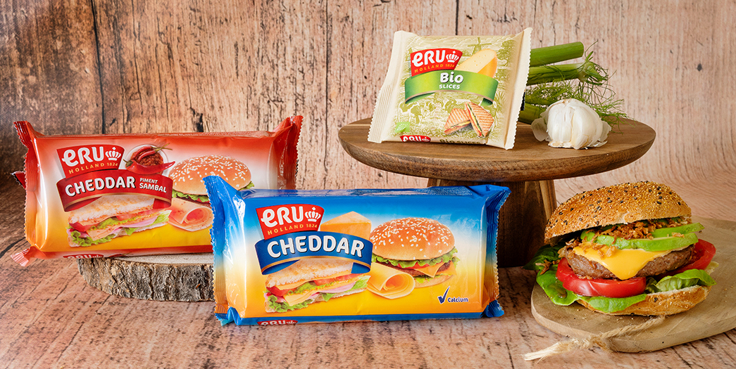 De plakjes cheddar verrijken vele gerechten in een handomdraai. Hamburgers en tosti’s zijn daarin het meest voor de hand liggend, maar onze cheddar is ook heerlijk in bijvoorbeeld ovenschotels of op een omelet. Ontdek ook onze veelzijdige en smaakvolle ERU Slices Cheddar Sambal.