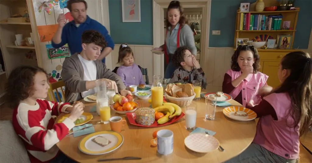 In onze tv-spot ontmoet je de familie Reems, een levendig en gezellig gezin met zes kinderen. Hun ochtenden zijn druk en chaotisch, maar dankzij de ervaring van vader Isaak en moeder Nancy loopt alles gesmeerd. Of het nu gaat om een snelle boterham aan de ontbijttafel of een goed gevulde broodtrommel voor onderweg – met ERU Goudkuipje loopt alles lekker gesmeerd!
