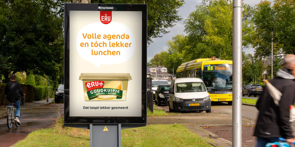Onze campagne is overal te zien: van een sprankelende tv-spot met de familie Reems tot opvallende posters in bushokjes en op reclameborden door heel Nederland. Daarnaast schitteren we op digitale schermen in grote steden, supermarkten en treinstations. Ook zullen we binnenkort jouw favoriete tv-programma’s mede mogelijk maken. Uiteraard delen we op social media exclusieve en leuke content, zodat ERU Goudkuipje overal aanwezig is.