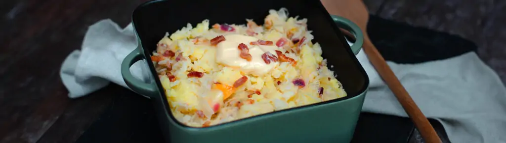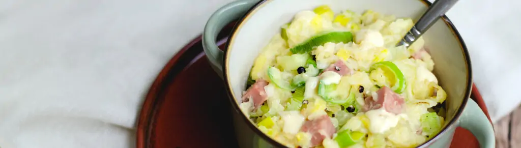 Deze stamppot warmt je op de koudere dagen heerlijk op. De milde pittigheid van mosterd, gecombineerd met romige kaas, ham en knapperige prei, past perfect bij de winterse sferen. Voor degenen die geen vlees eten of eens iets anders willen, combineert deze stamppot ook perfect met witvis.